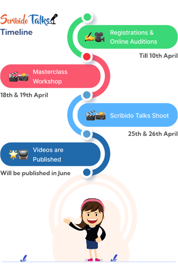 Scribido Talks is an online event, hosted on YouTube and scribidotalks.com. Students can choose a unique topic or subject close to their hearts and deliver a 3–5 minute talk. The process includes:
